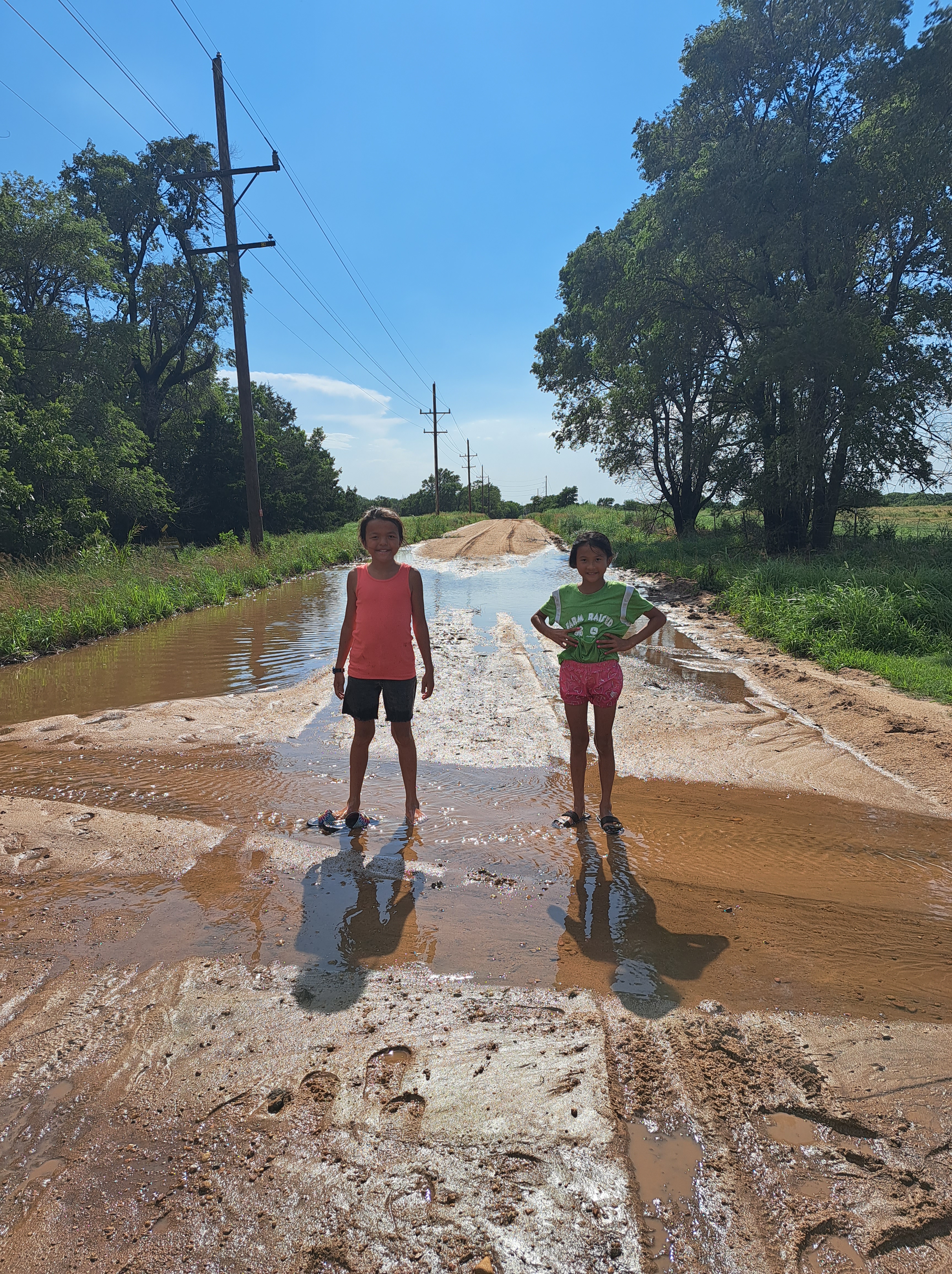 It’s been a really long time, if ever in their lifetime, the girls have had mud puddles to play in.