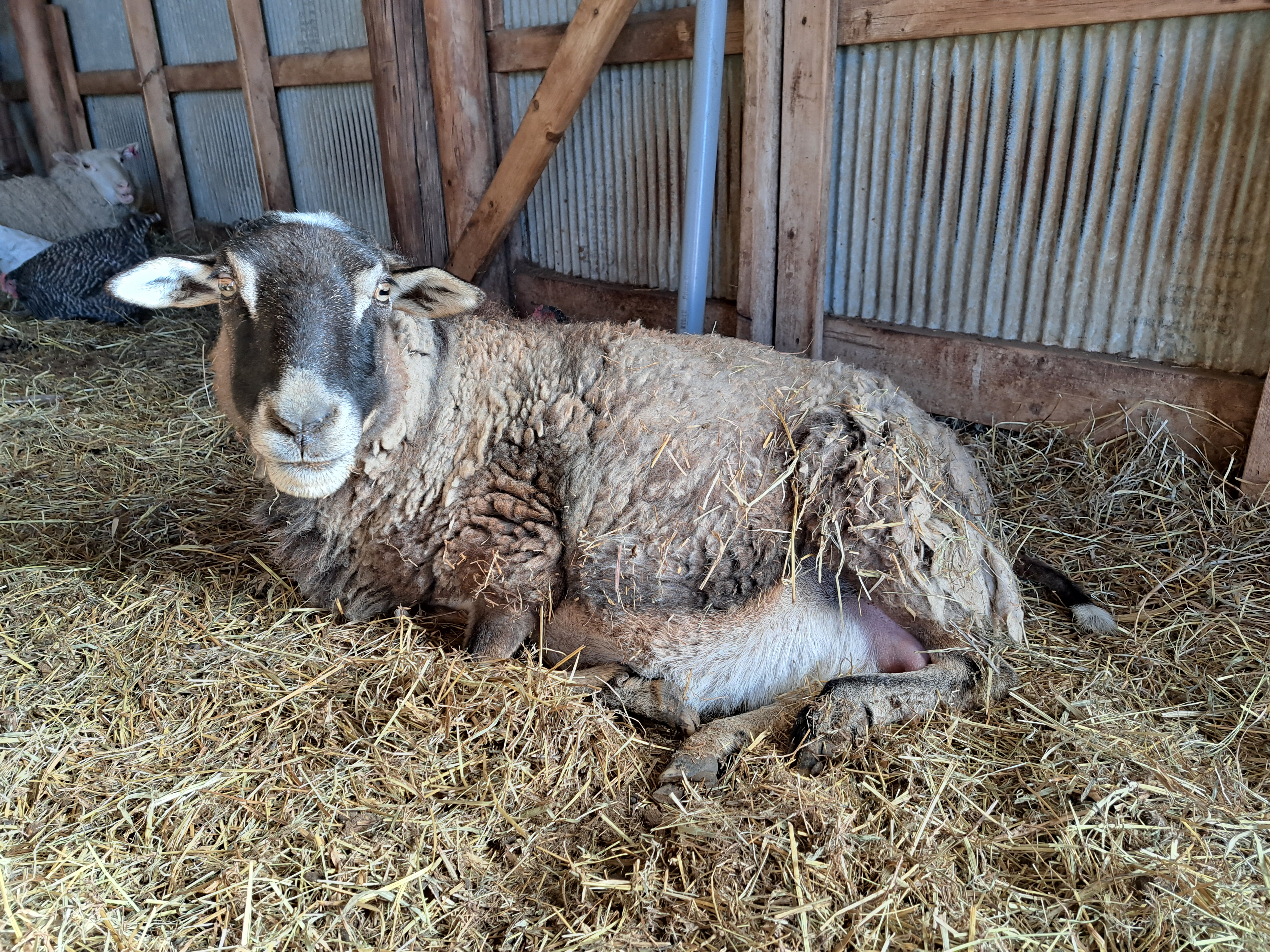 Lastly, was the unplanned lambing of our old Romanov sheep. Our breeding didn’t go quite as planned, of course, and we had one of our old ewes get through the fence with a ram (for like 5 minutes) and that’s all it took for us to get our little miracle lamb.