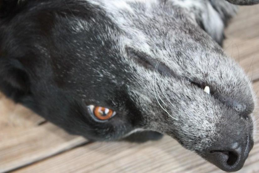 She barks, she plays with the other dogs, and she eats well….really well. She has gain one whole pound which is a lot for what was an 8 1/2 lb dog. She now weighs 9.6 lbs and has had her food cut back a bit. She still runs from us when we try to pick her up, but she will hopefully come around there too. We try to take her with us as much as possible, and I think this has been huge in her progress.