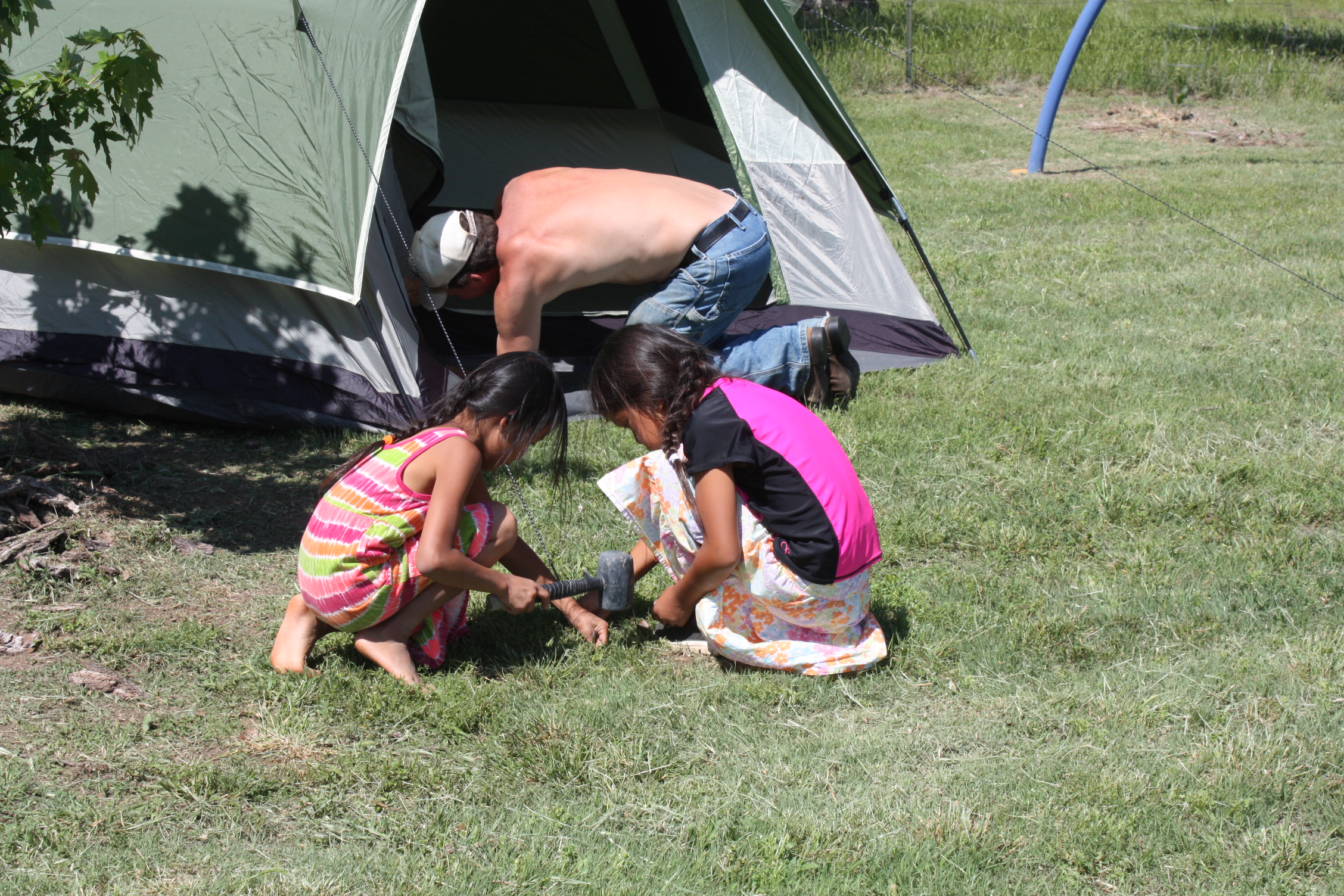 The girls helped Randy put up the tent while I gathered all the food, bug spray, and necessities.