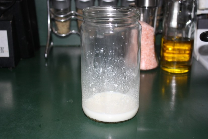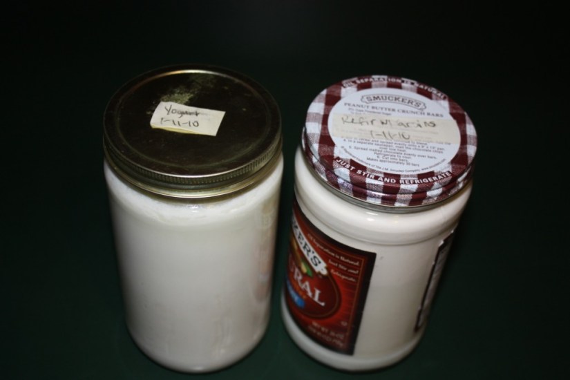 Add remaining 2 T yogurt to the jar. Carefully add warmed milk to the jar.